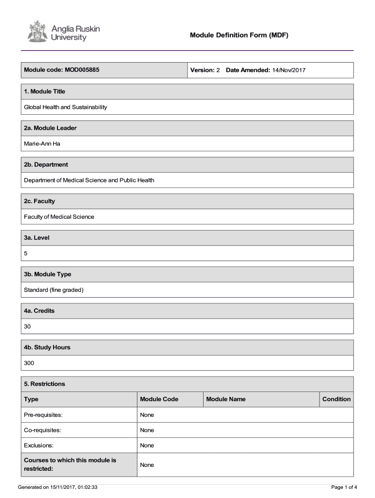 Module Definition Form (MDF)Module code: MOD005885Version: 2 Date Amended: 14/Nov/20171. Module Title