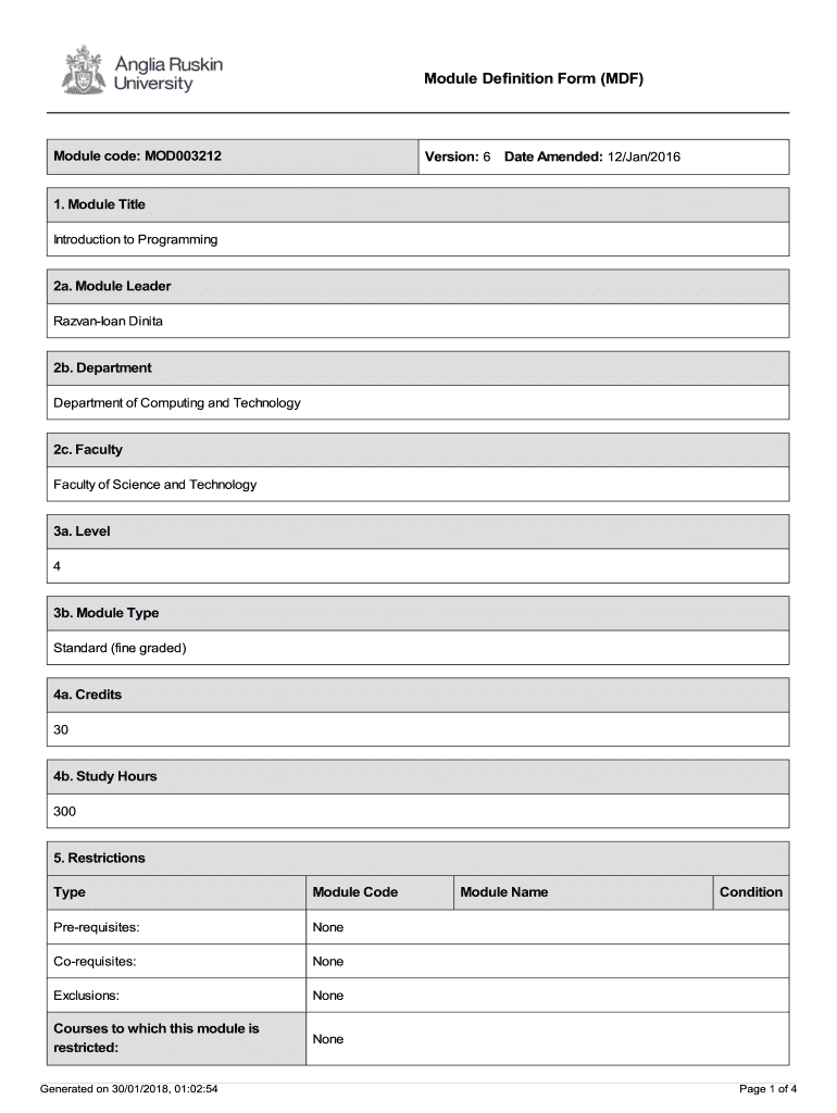 Module Definition Form (MDF)Module code: MOD003212Version: 6 Date Amended: 12/Jan/20161. Module Title