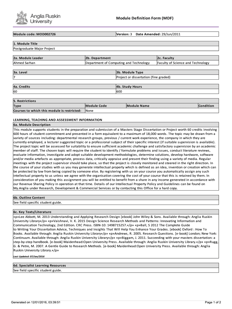 Get the free This module supports students in the preparation and submission of a Masters Stage D...