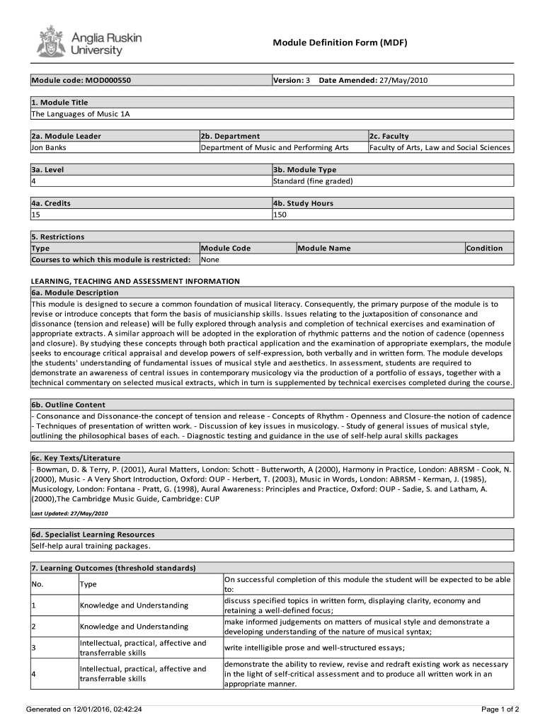 Get the free This module is designed to secure a common foundation of musical literacy - e-vision...