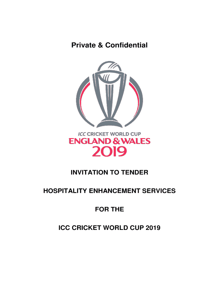 Private & ConfidentialINVITATION TO TENDER HOSPITALITY ENHANCEMENT SERVICES FOR THE ICC CRICKET WORLD CUP 20191.INTRODUCTION The ICC (as defined in Appendix A), acting through its wholly owned subsidiary