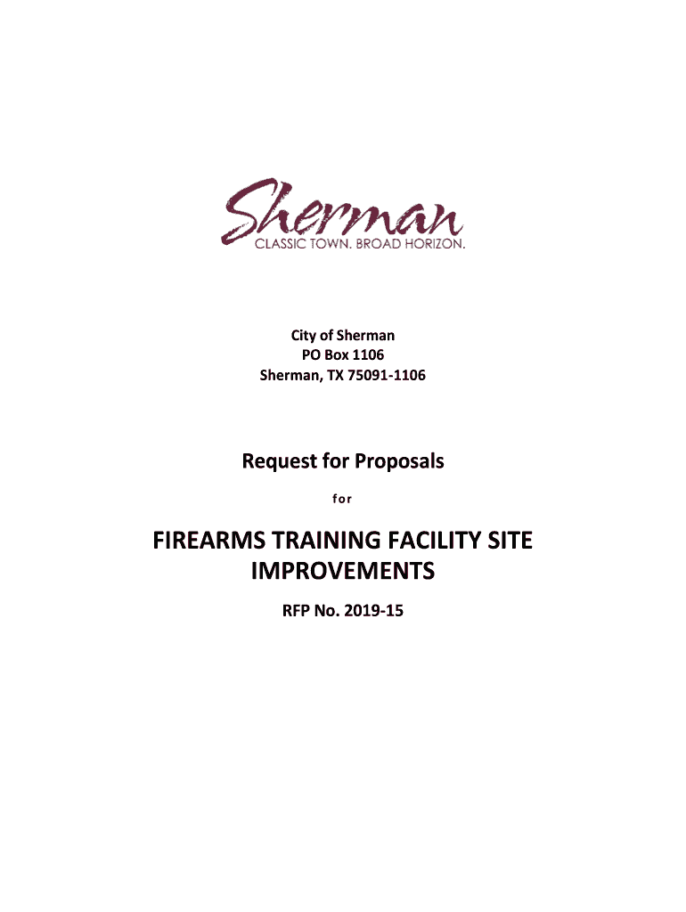 City of Sherman PO Box 1106 Sherman, TX 750911106Request for Proposals firearms TRAINING FACILITY SITE IMPROVEMENTS RFP No. 2019151 1TABLE OF CONTENTS Document Page #Request for Proposals Description,