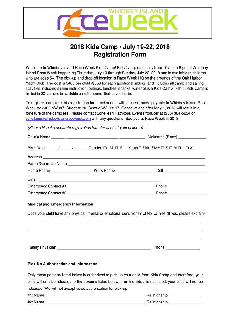 Get the free 2018 Kids Camp / July 19-22, 2018 Registration Form