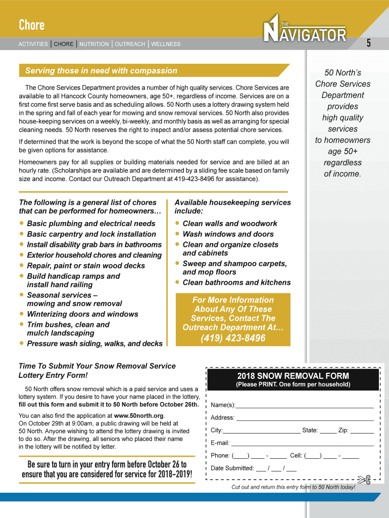 ACTIVITIESCHORENUTRITIONOUTREACH5WELLNESSServing those in need with compassionate Chore Services Department provides a number of high quality services. Chore Services are