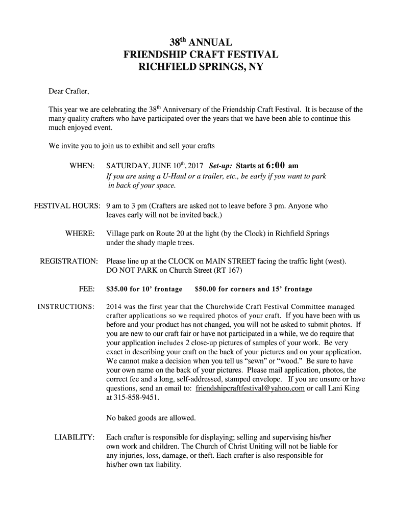 Get the free 38th ANNUAL FRIENDSHIP CRAFT FESTIVAL RICHFIELD SPRINGS