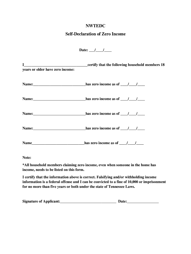 NWT EDC SelfDeclaration of Zero Incomplete: / / I certify that the following household members 18 years or older have zero income:Name: has zero income as of / / Name: has zero income as of / / Name: