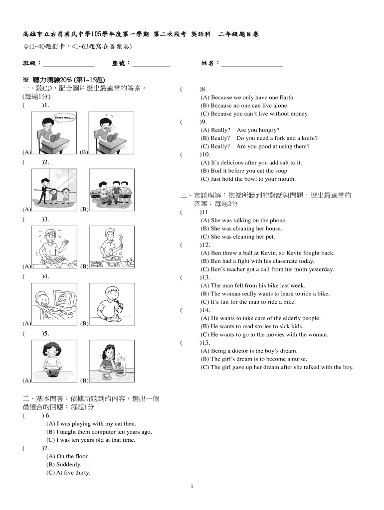 105 (1404163) 20% (115) CD (1) ()1.()8. (A) Because we only have one Earth. (B) Because no one can live alone. © Because you can't live without money.()9. (A) Really? Are you hungry? (B) Really?