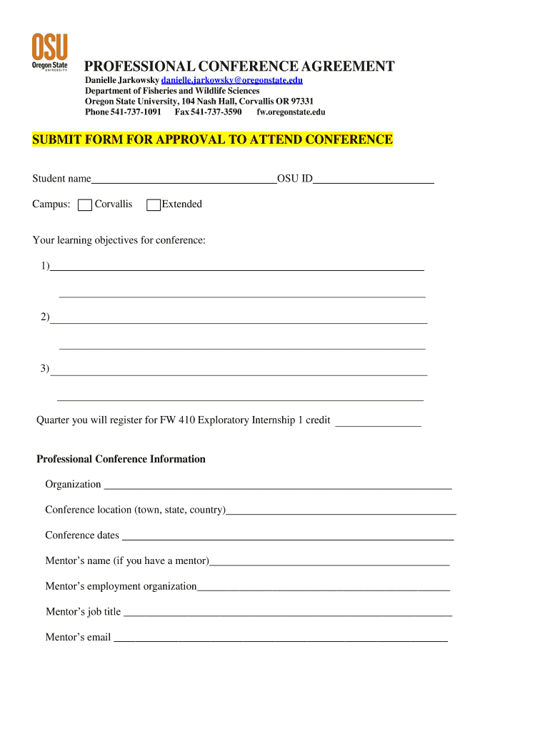 Get the free PROFESSIONAL CONFERENCE AGREEMENT - Oregon State - fw oregonstate