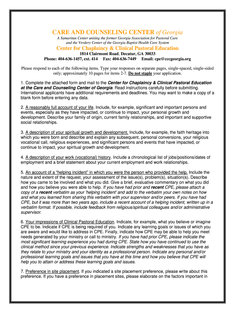 CARE AND COUNSELING CENTER of Georgia A Samaritan Center uniting the former Georgia Association for Pastoral Care and the Verde Center of the Georgia Baptist Health Care SystemCenter for Chaplaincy