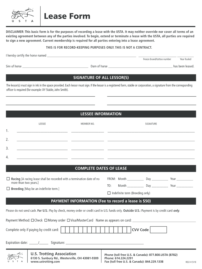 Lease Form DISCLAIMER: This basic form is for the purposes of recording a lease with the USTA. It may neither override nor cover all terms of an existing agreement between any of the parties involved.