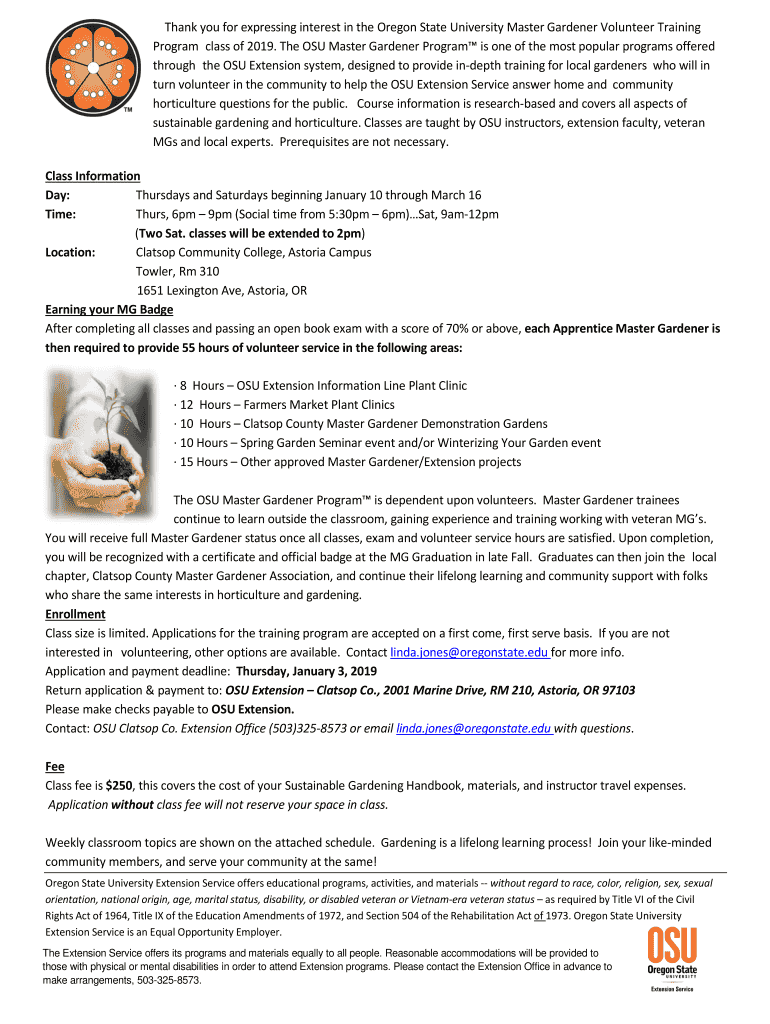 Thank you for expressing interest in the Oregon State University Master Gardener Volunteer Training