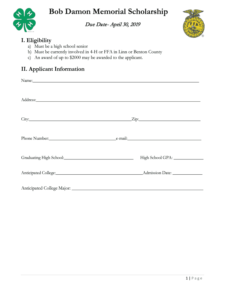 Due Date April 30, 2019I. Eligibility) Must be a high school senior
