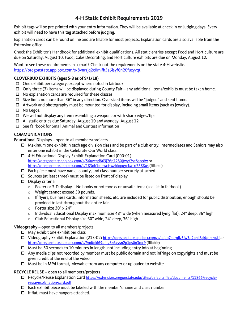 4H Static Exhibit Requirements 2019