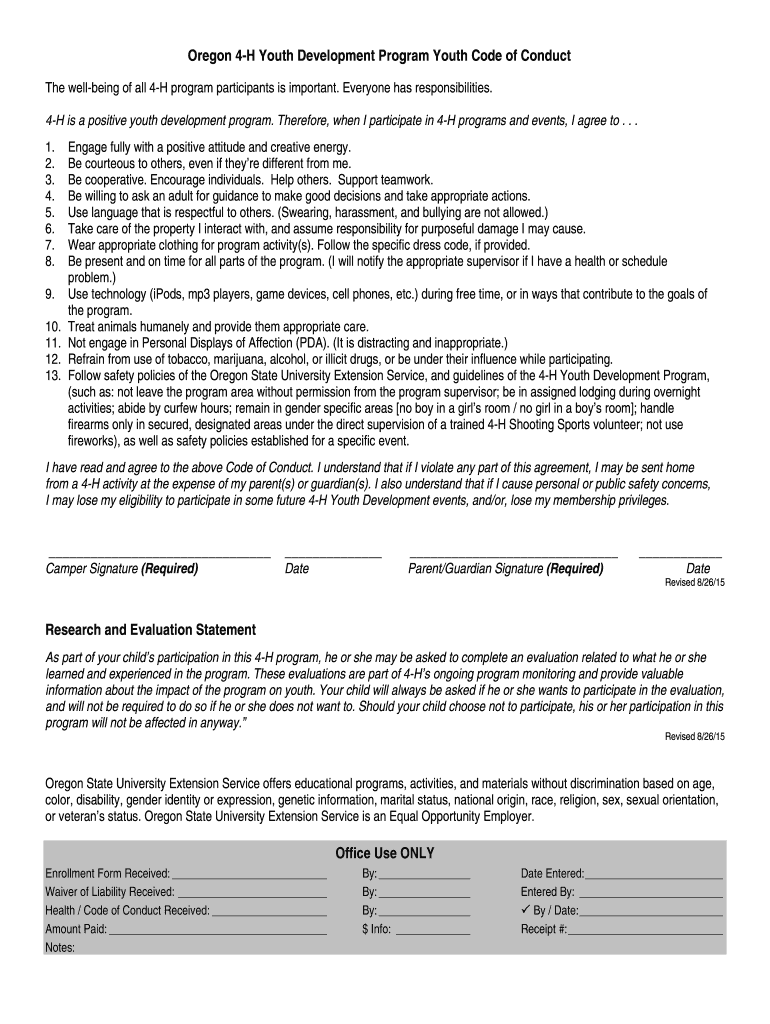 Oregon 4H Youth Development Program Youth Code of Conduct