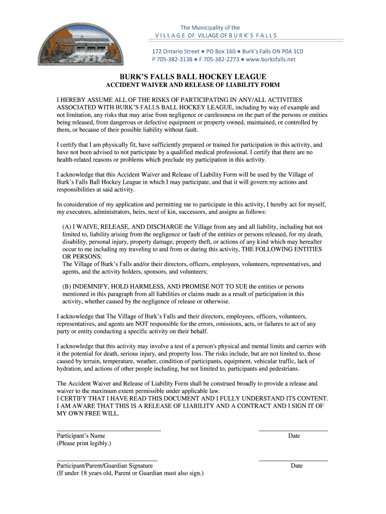 The Municipality of the V I L L A G E OF VILLAGE OF B U R K S F A L L S 172 Ontario Street PO Box 160 Burks Falls ON P0A 1C0 P 7053823138 F 7053822273 www.burksfalls.netBURKS FALLS BALL HOCKEY LEAGUE