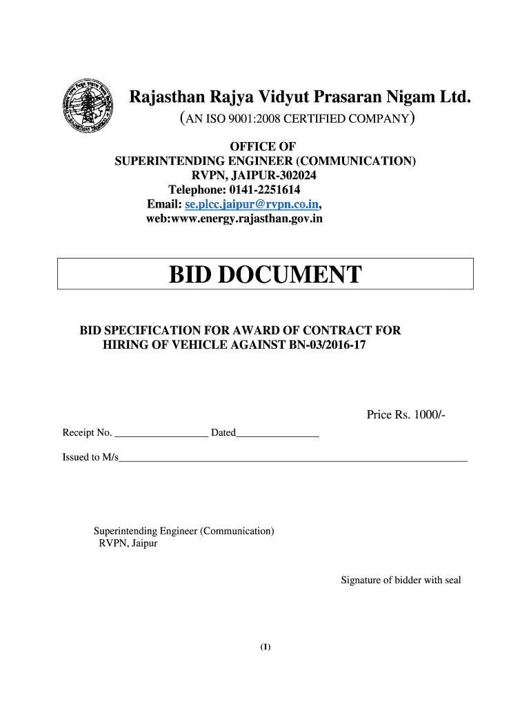 Rajasthan Raja Vilyui Prussian Night Ltd. (AN ISO 9001:2008 CERTIFIED COMPANY) OFFICE OF SUPERINTENDING ENGINEER (COMMUNICATION) VPN, JAIPUR302024 Telephone: 01412251614 Email: SE.PCC. Jaipur VPN.co.in,