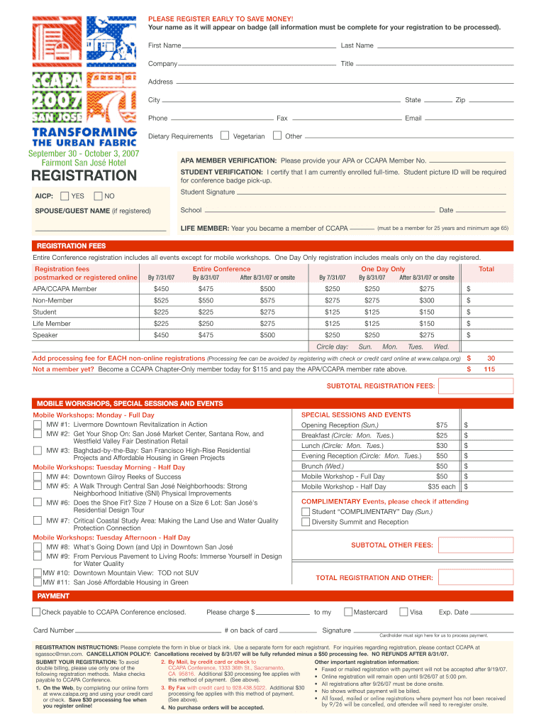 PLEASE REGISTER EARLY TO SAVE MONEY! Your name as it will appear on badge (all information must be complete for your registration to be processed). First Nameless NameCompanyTitleAddress CityStatePhoneFaxDietary
