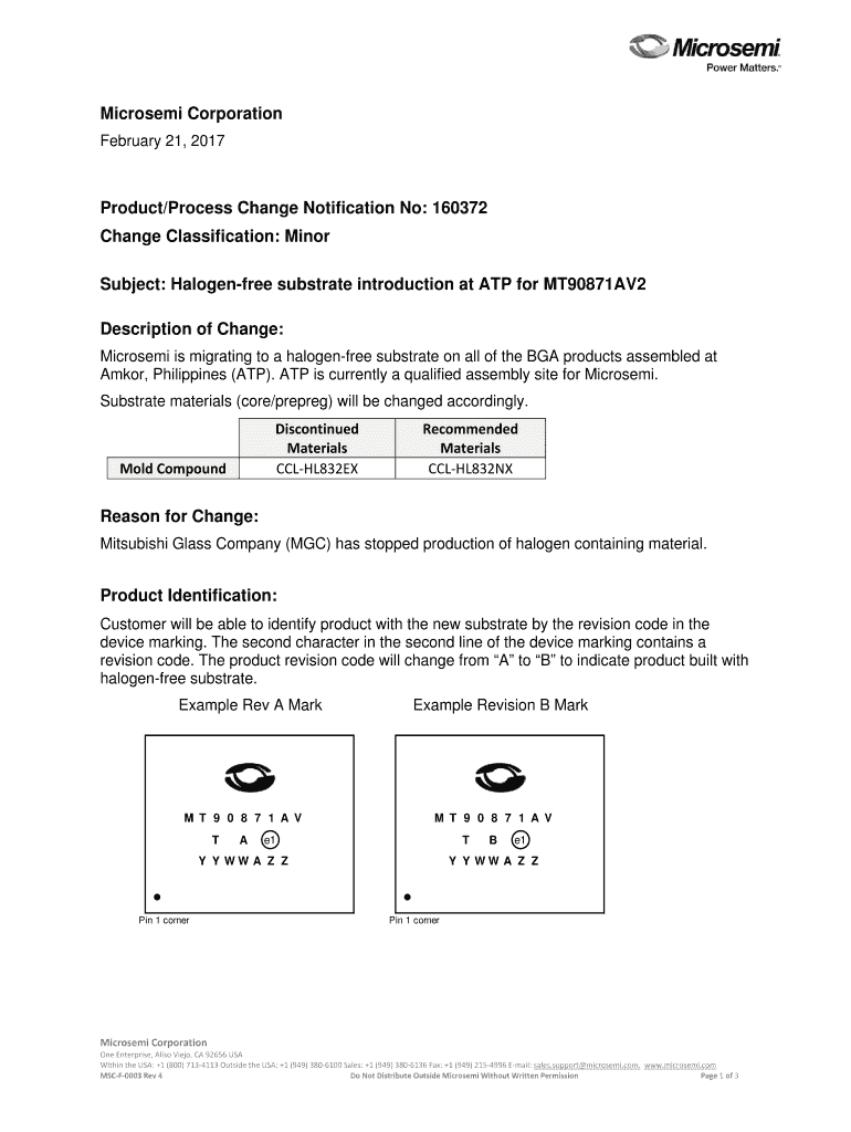 Get the Microsemi PCN 160372 ATP to Halogen Free Substrates