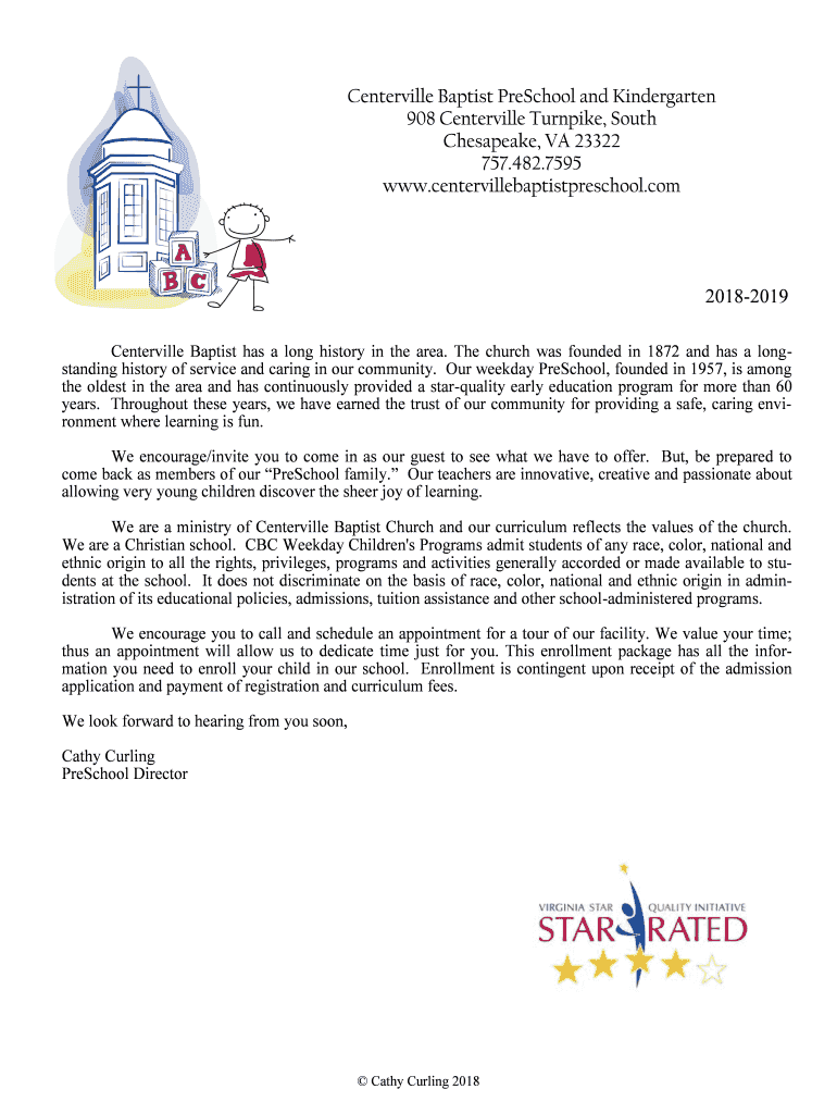 Get the free Parent Policy Handbook - Centerville Baptist Preschool