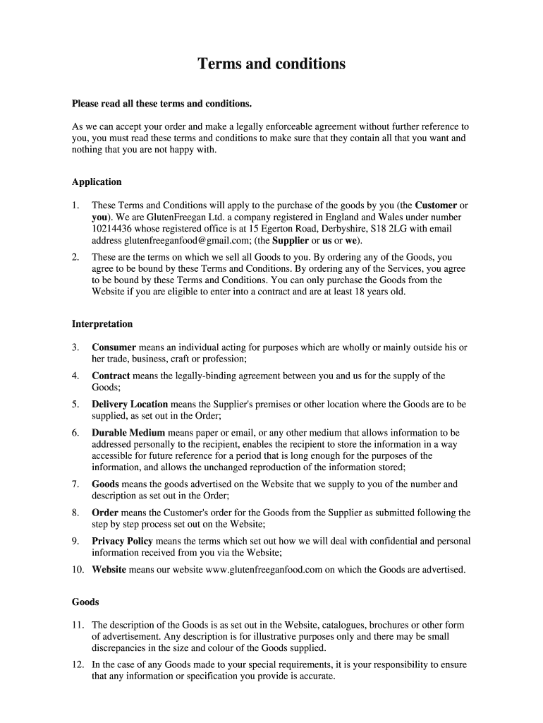 Get the free These Terms and Conditions will apply to the purchase of the goods by you (the Custo...