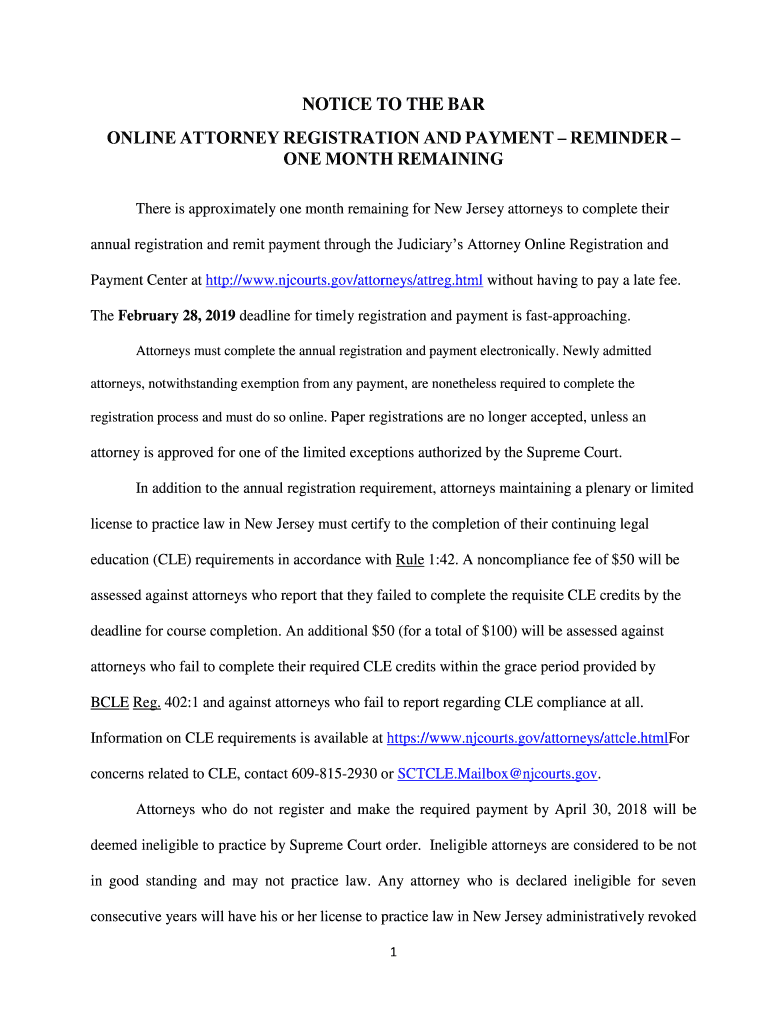 Get the free notice to the bar online attorney registration and ... - NJ Courts