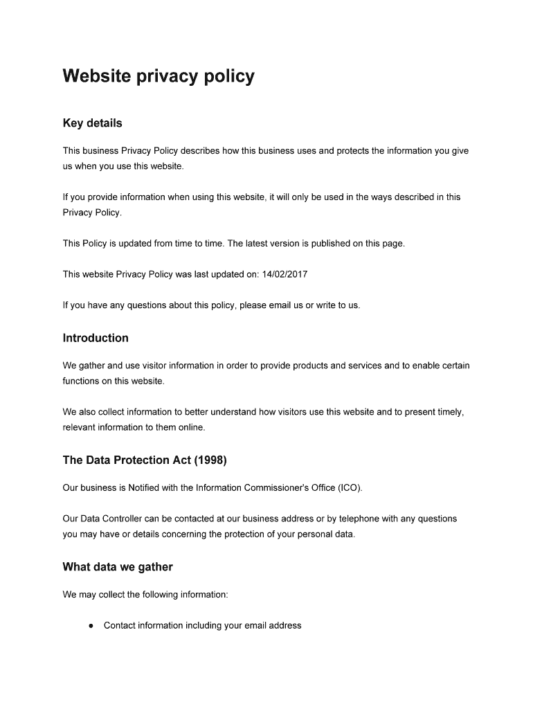Fill out your sample privacy policy template online with pdfFiller!