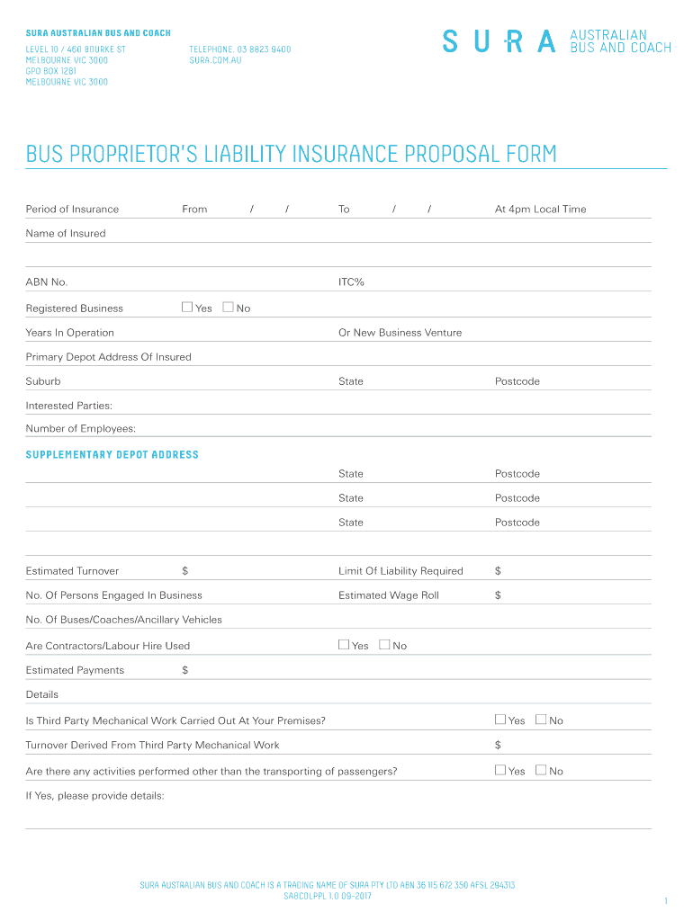 Get the free BUS PROPRIETOR'S LIABILITY INSURANCE PROPOSAL FORM