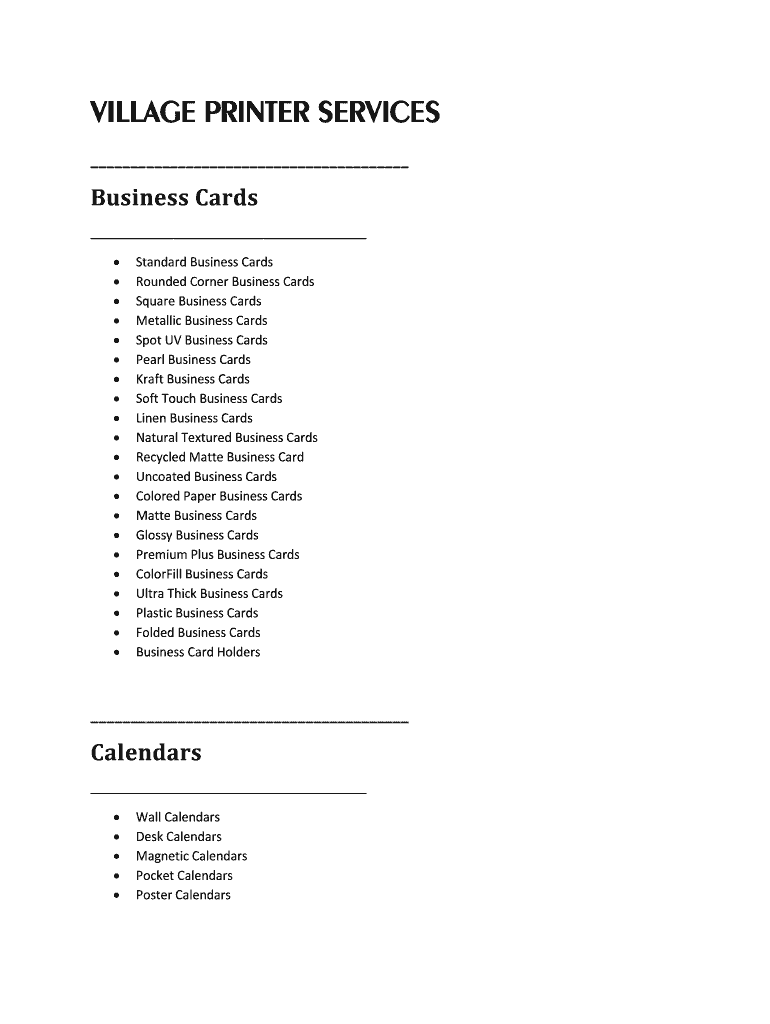 VILLAGE PRINTER SERVICES Business Cards Standard Business Cards Rounded Corner Business Cards Square Business Cards Metallic Business Cards Spot UV Business Cards Pearl Business Cards Kraft Business