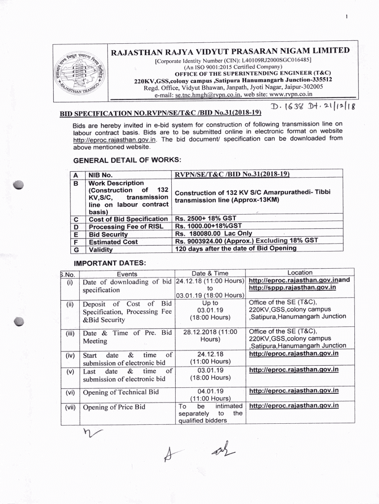 RAJASTHAN Rays A VILYUI PRUSSIAN NI GAM LIMITED Corporate Identity Number (IN): L40I09RJ2000SGCOI6485 (An ISO 9001 :2015 Certified Company) OFFICE OF THE SUPERINTENDING ENGINEER (T&C)220KV,GAS, colony