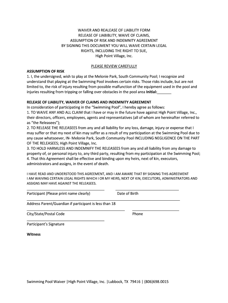 Pool Waiver - High is not the form you're looking for?Search for another form here.