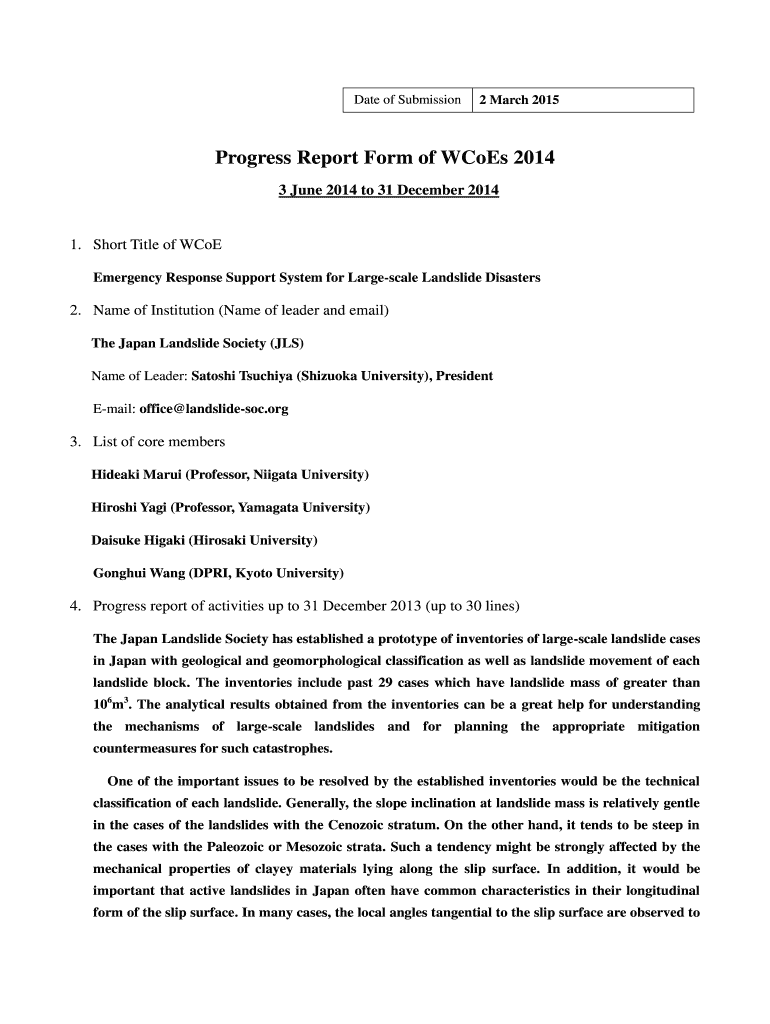 Date of Submission2 March 2015Progress Report Form of Woes 2014