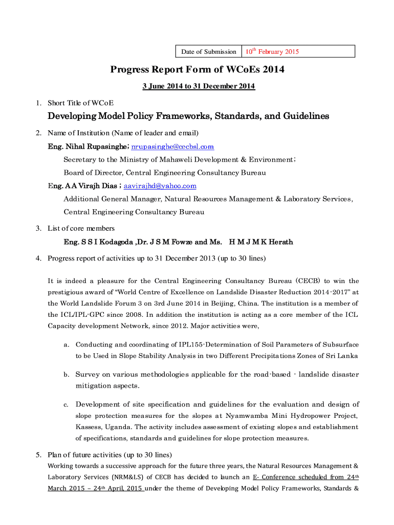Get the free Progress Report Form of WCoEs 2014 - iplhq.org