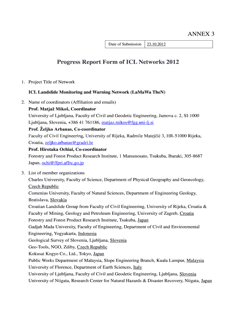 Date of Submission23.10.2012Progress Report Form of ICL Networks 20121. Project Title of Network