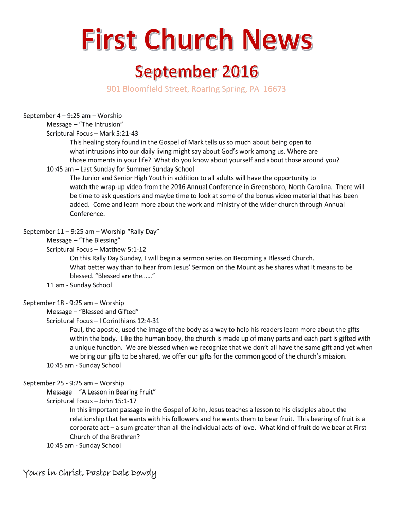 Get the free Sinking Spring, PAThe Gospel of Jesus Christ - Covenant