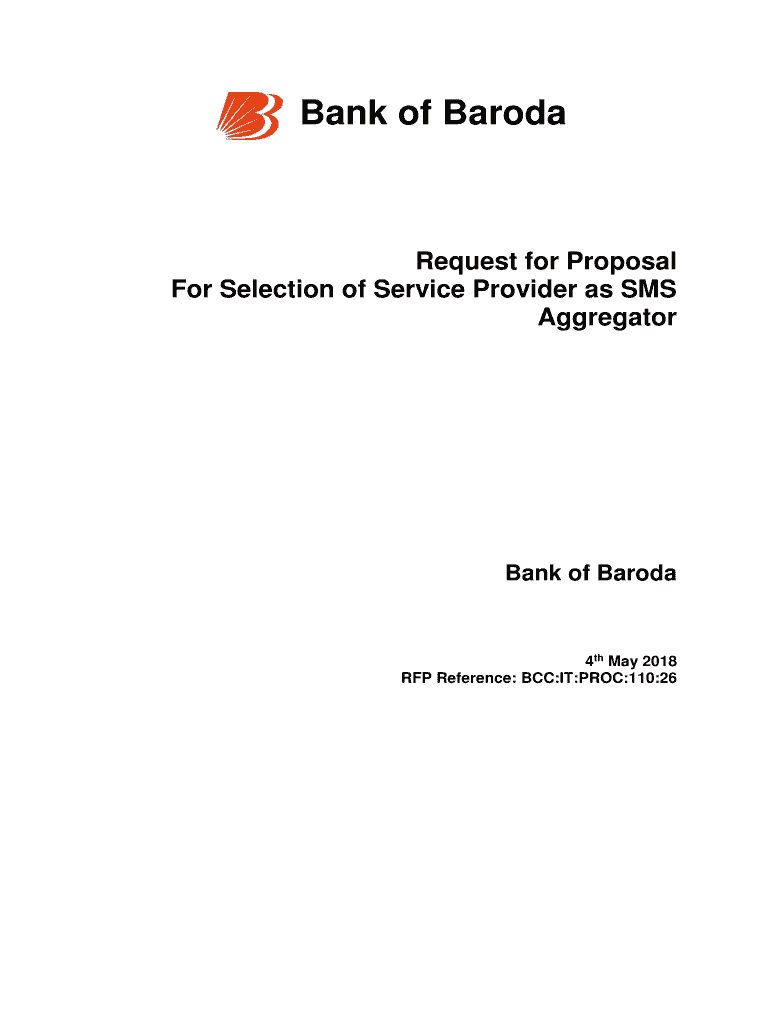 Bank of BarodaRequest for Proposal For Selection of Service Provider as SMS AggregatorBank of Baroda4th May 2018 RFP Reference: BCC:IT:PRO:110:26Bank of Baroda A Important date: #ParticularsTimelines