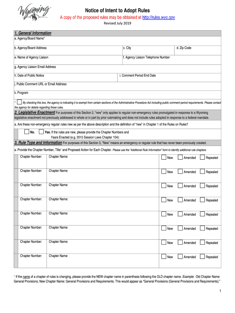 Get the free Notice of Intent to Adopt Rules Four - Wyoming Department of ... - soswy state wy