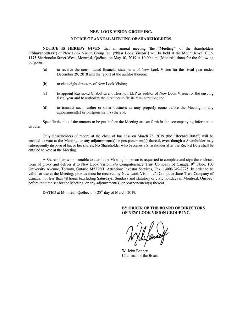 Get the free New Look Vision Group Inc. Announces Election of Directors ...