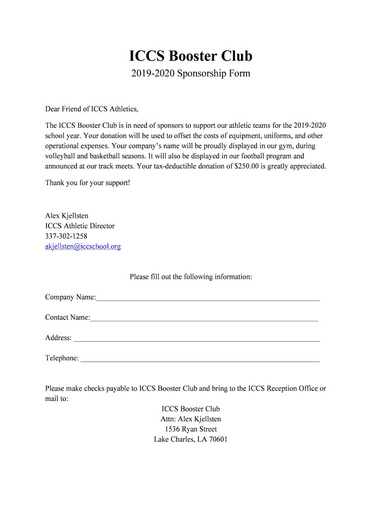 The CCS Booster Club is in need of sponsors to support our athletic teams for the 20192020