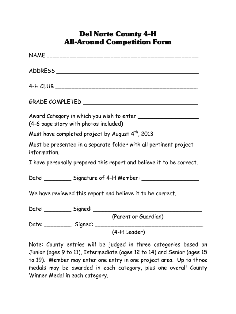 Get the free All Around Competition Form - cehumboldt ucanr