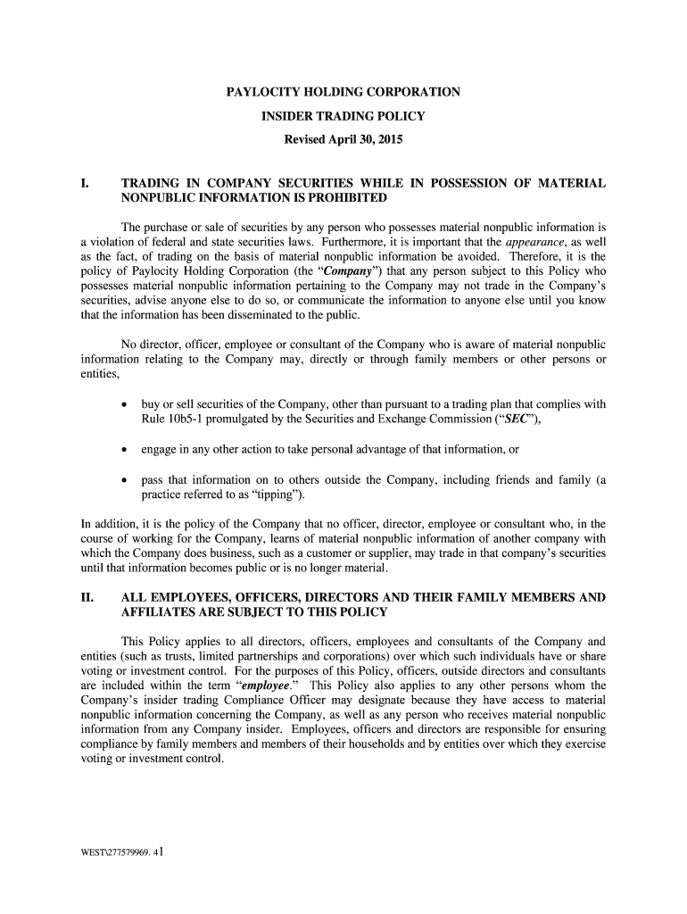 Revised April 30, 2015I.TRADING IN COMPANY SECURITIES WHILE IN POSSESSION OF MATERIAL