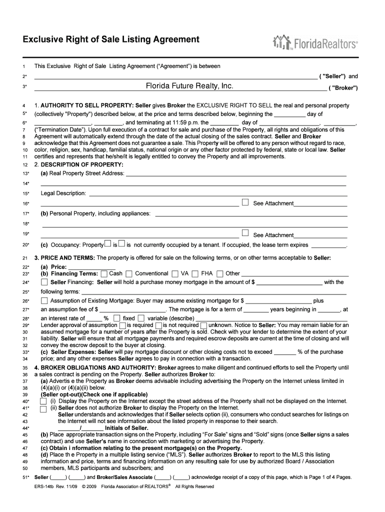 Exclusive Right of Sale Listing Agreement 1 This Exclusive Right of Sale Listing Agreement (Agreement) is between 2* (Seller “) and 3* Florida Future Realty, Inc. (Broker “) 4 1. AUTHORITY TO