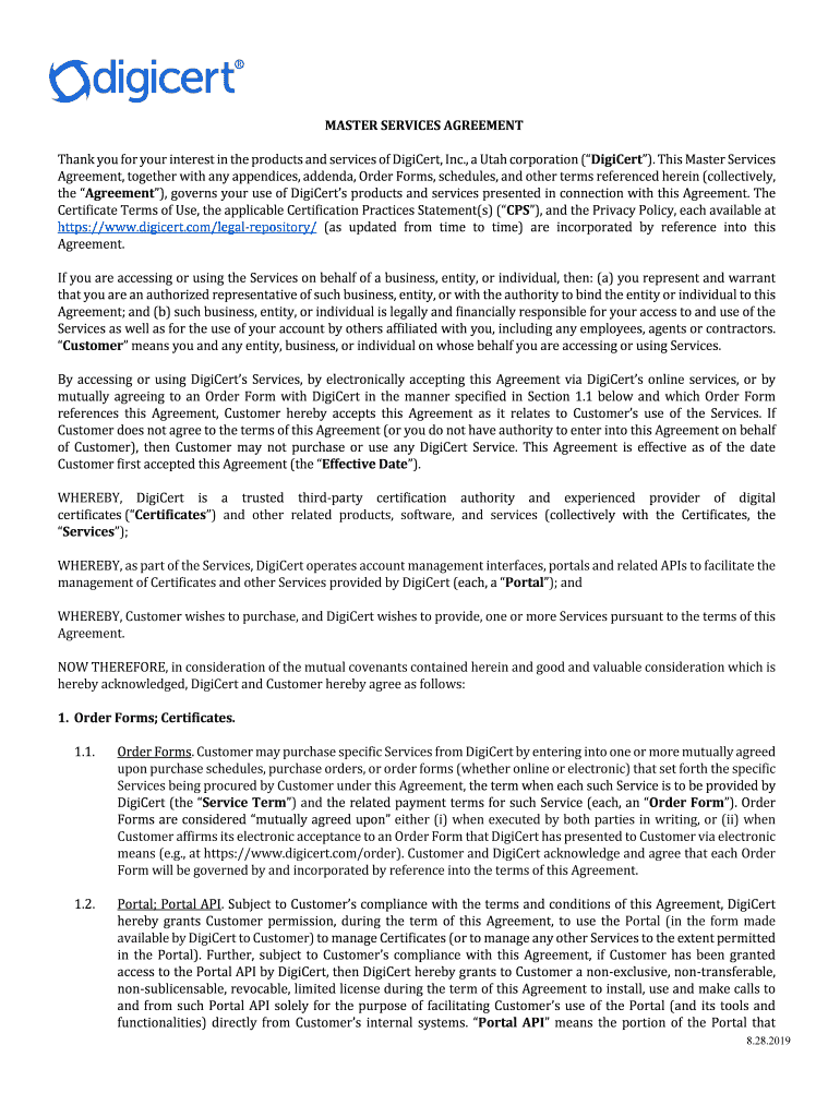 Get the free MASTER SERVICES AGREEMENT Thank you for ... - DigiCert