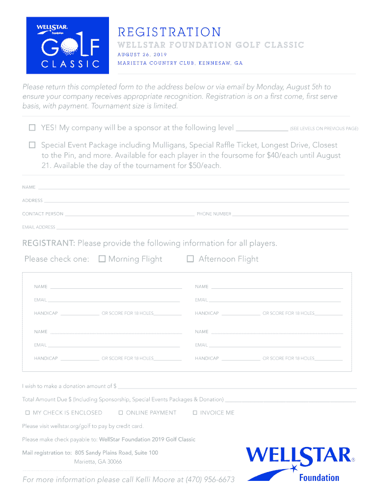 M A R I E T T A C O U N T R Y C L U B, K E N N E S A W, GA Join us for the Annual Well Star Foundation Golf Classic