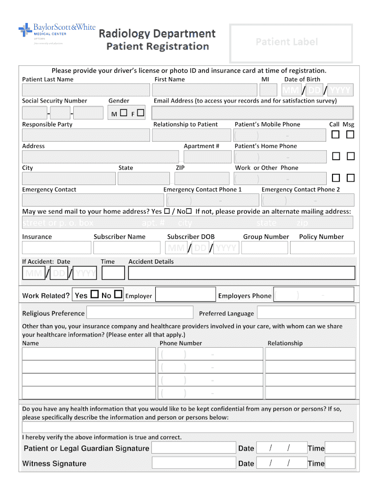 Please provide your driver's license or photo ID and insurance card at time of registration. Patient Last NameFirst Nameplate of Birth MM / DD / YYY. Social Security NumberGenderEmail Address (to