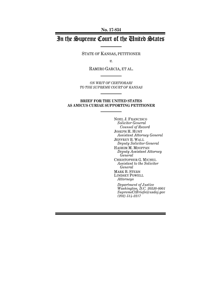 Get the free No. SUPREME COURT OF THE UNITED STATES v. Respondent. On Writ ...