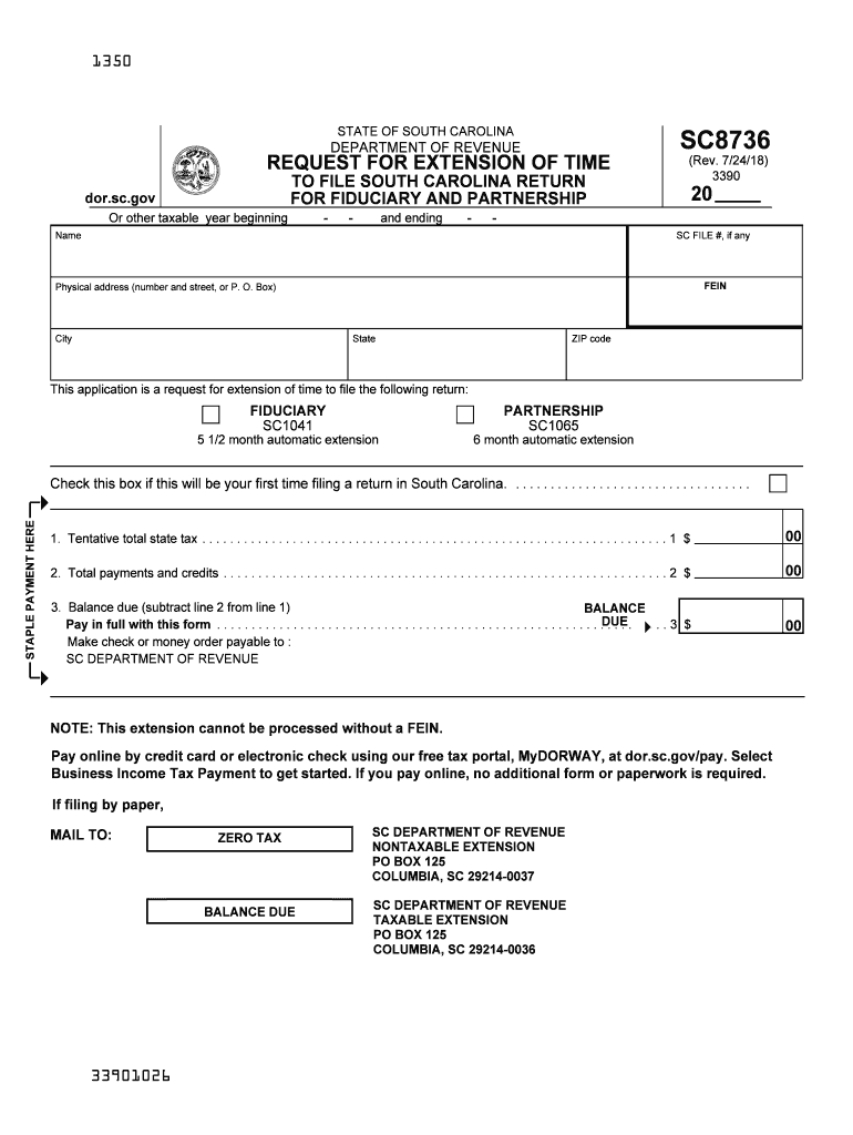 1350STATE OF SOUTH CAROLINADEPARTMENT OF REVENUEREQUEST FOR EXTENSION OF TIME