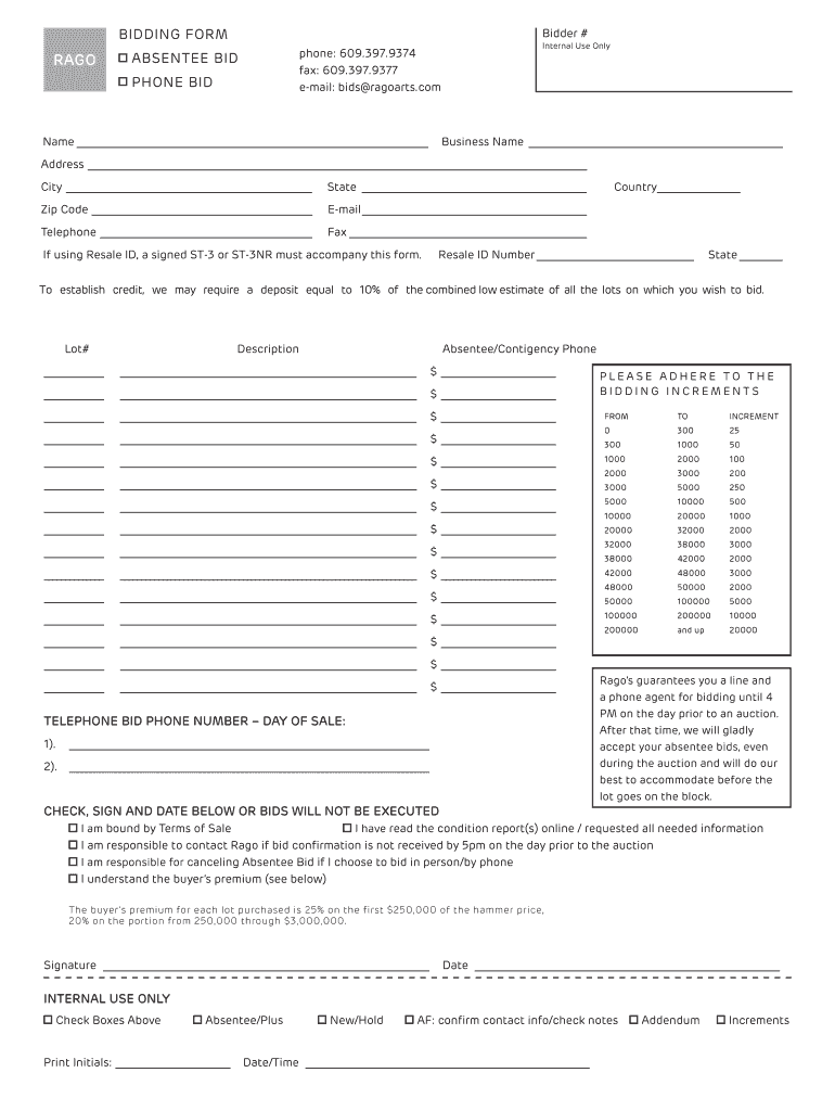 Get the free bidding form absentee bid phone bid - Rago Auctions