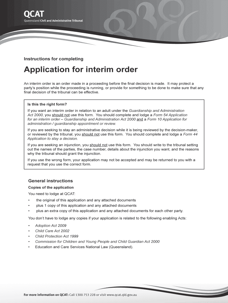 Queensland Civil and Administrative TribunalInstructions for completingApplication for interim order