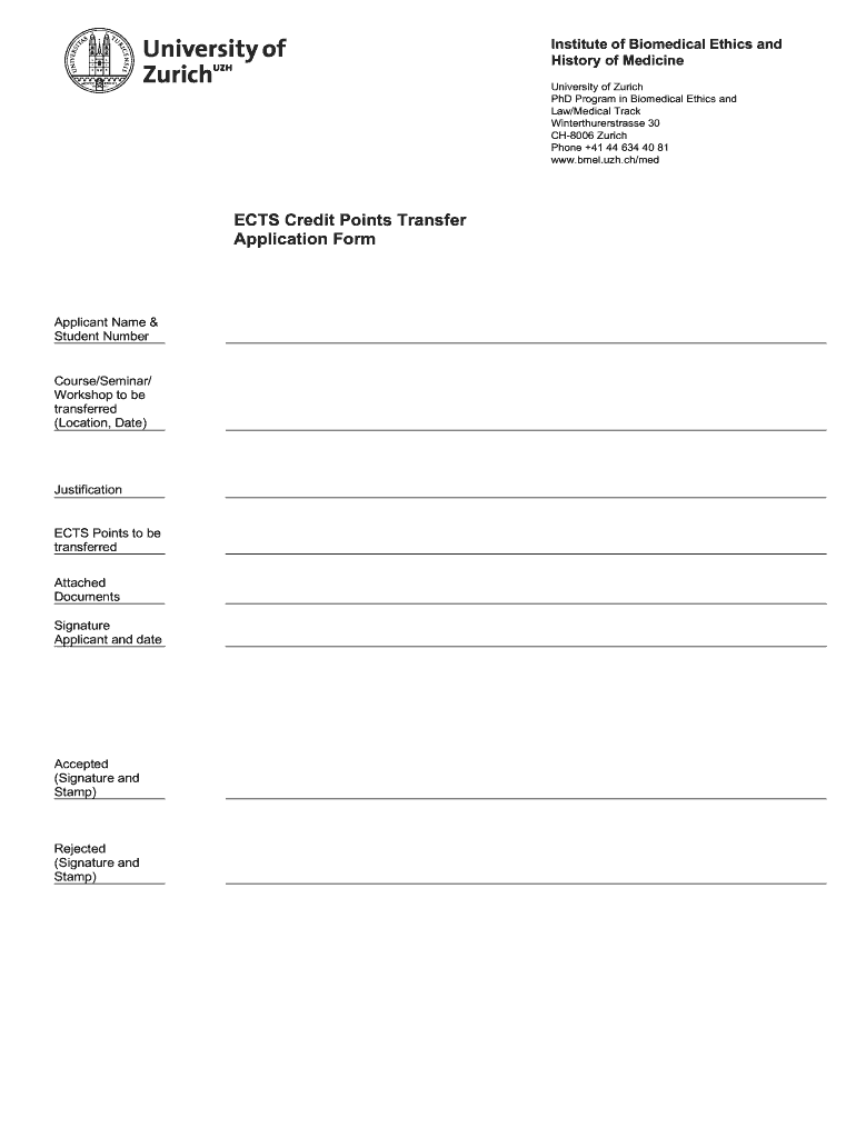 Institute of Biomedical Ethics and History of Medicine University of Zurich PhD Program in Biomedical Ethics and Law/Medical Track Winterthurerstrasse 30 CH8006 Zurich Phone +41 44 634 40 81 www.bmel.uzh.ch/medECTS