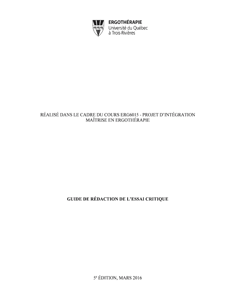 RALES DAYS LE CADRE DU COURSE ERG6015 PROJECT INTEGRATION MARINE EN ERGOTHRAPIEGUIDE DE REACTION DE LES SAI CRITIQUE5e EDITION, MARS 2016TABLE DES MATURES LIST DES TABLEAUX .........................................................................................................